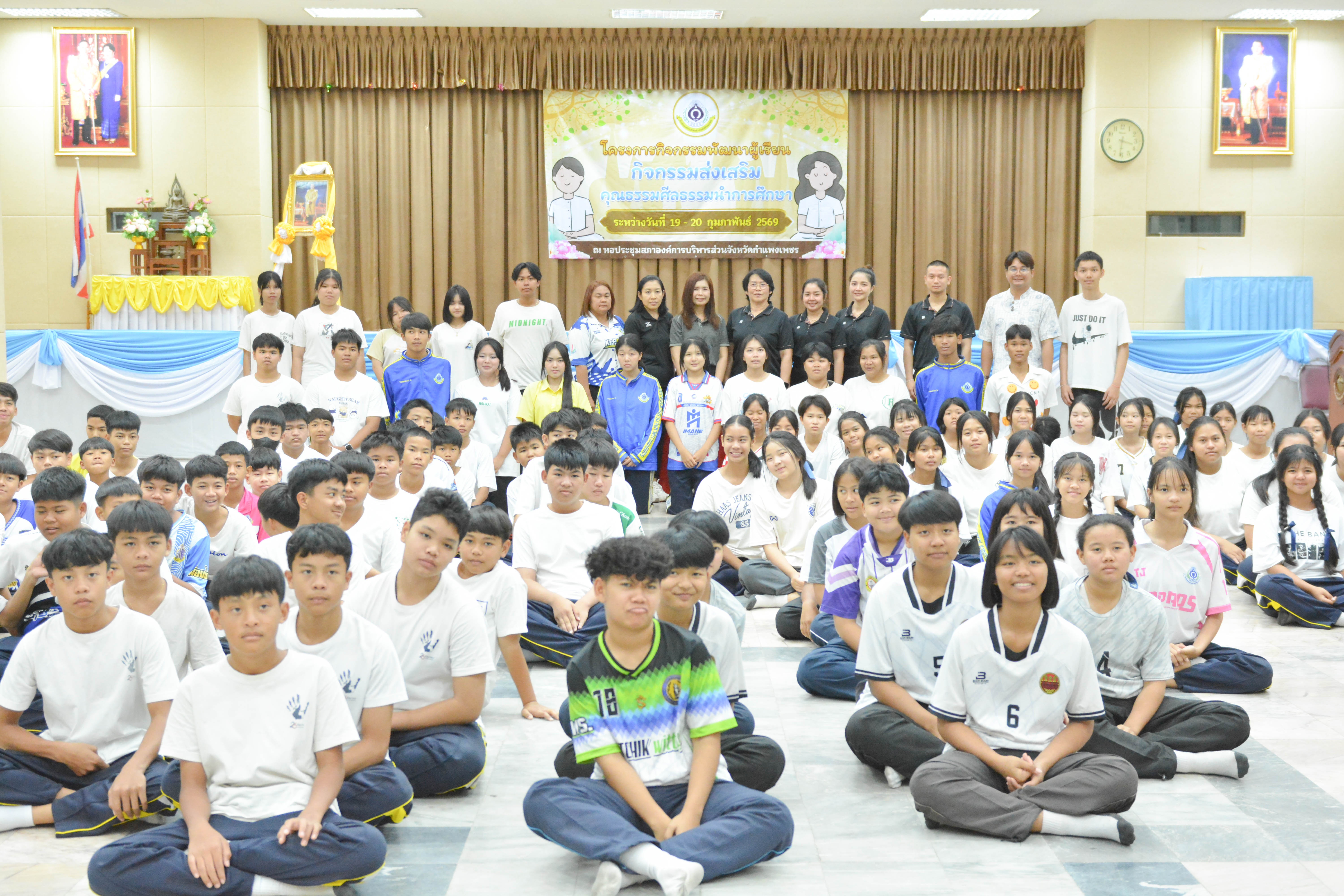 ระหว่างวันที่ 19–20 กุมภาพันธ์ 2569 กลุ่มสาระการเรียนรู้สังคมศึกษา ศาสนาและวัฒนธรรม โรงเรียนองค์การบริหารส่วนจังหวัดกำแพงเพชร จัดโครงการกิจกรรมพัฒนาผู้เรียน “กิจกรรมส่งเสริมคุณธรรม ศีลธรรมนำการศึกษา” ณ หอประชุมสภาองค์การบริหารส่วนจังหวัดกำแพงเพชร โดยได้รับเกียรติจาก ดร.สมศักดิ์ เอี่ยมดี ที่ปรึกษานายกองค์การบริหารส่วนจังหวัดกำแพงเพชร เป็นประธานเปิดกิจกรรม และนางสาวศิริวรรณ กระต่ายทอง รองผู้อำนวยการโรงเรียน เป็นผู้กล่าวรายงาน